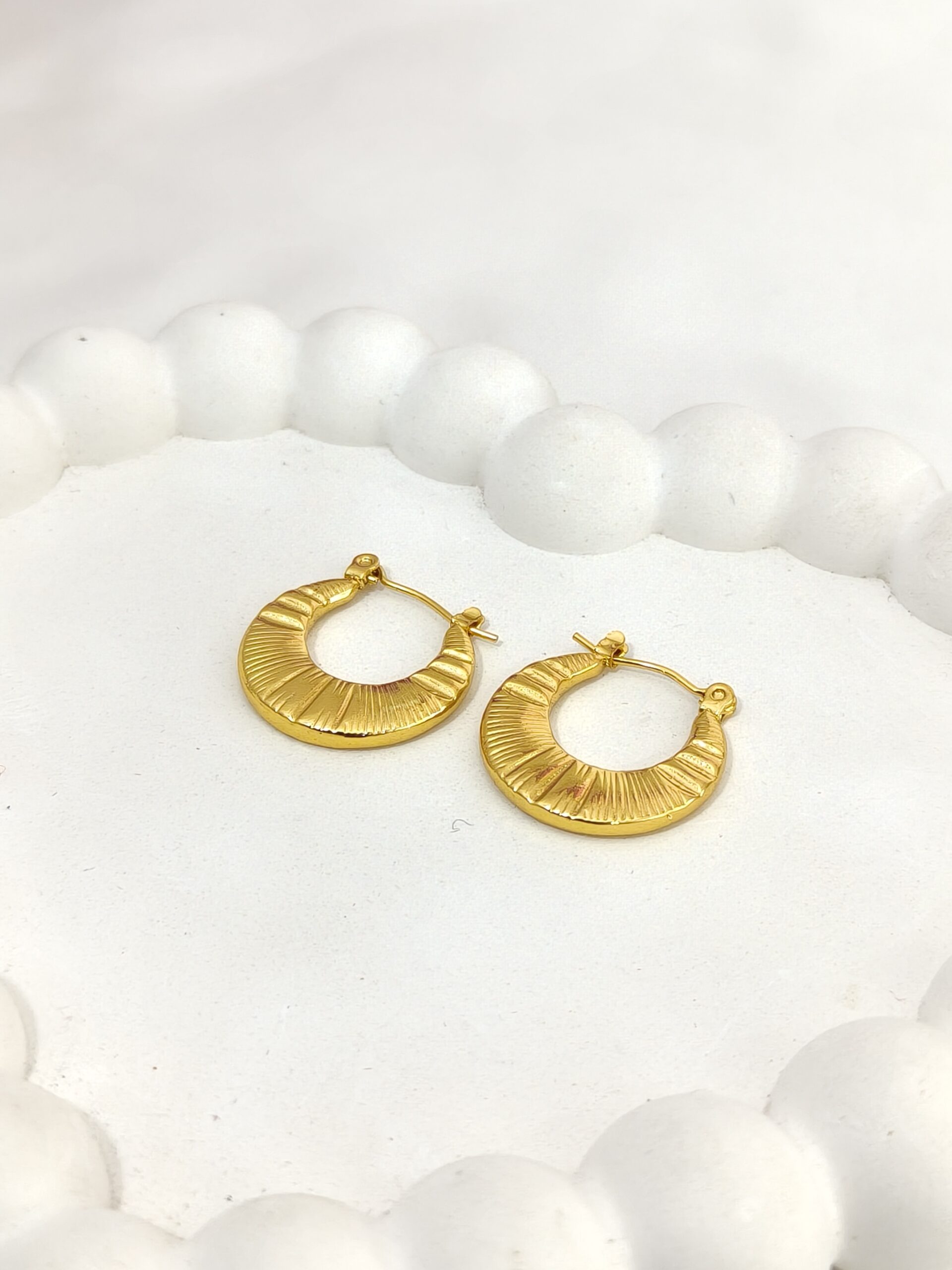 Upgrade your look with these Classic Gold Textured Hoop Earrings, designed to add a touch of elegance to every outfit. These hoops feature a beautifully detailed textured surface with premium gold plating, giving them a luxurious and timeless appeal.