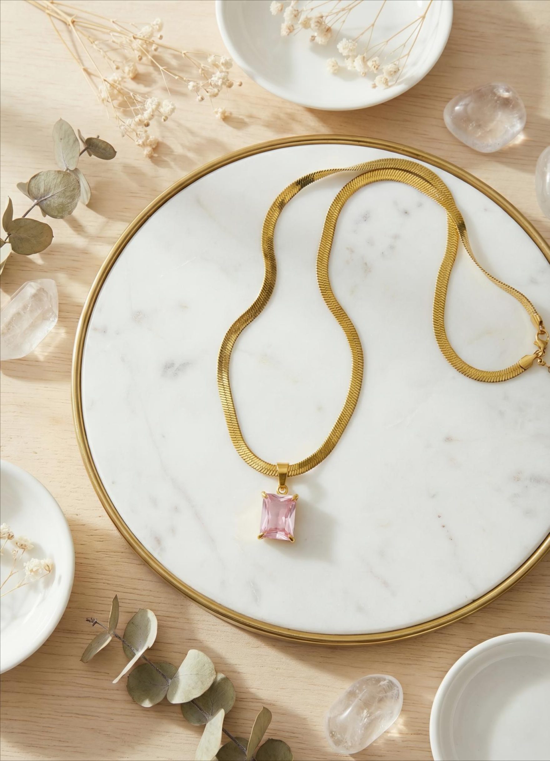 Add a soft touch of elegance to your look with our Pink Crystal Gold Plated Pendant, designed for women who love minimal yet classy jewelry. Featuring a beautiful pink crystal stone set in a premium gold-plated finish, this pendant radiates subtle charm and feminine grace.